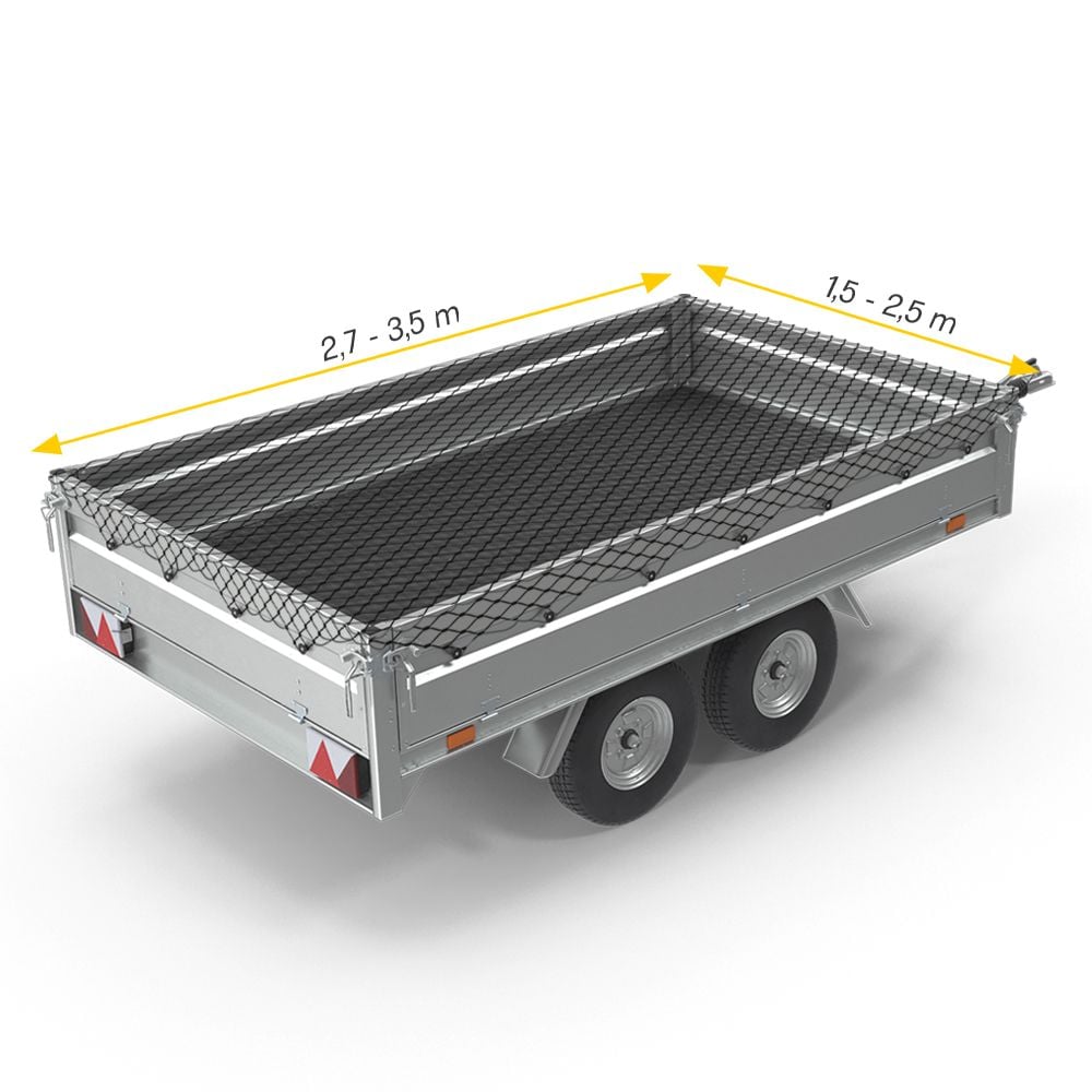 - 1x Filet de remorque 1,5x2,7m à 2,5x3,5m avec marquage d'angle inclus