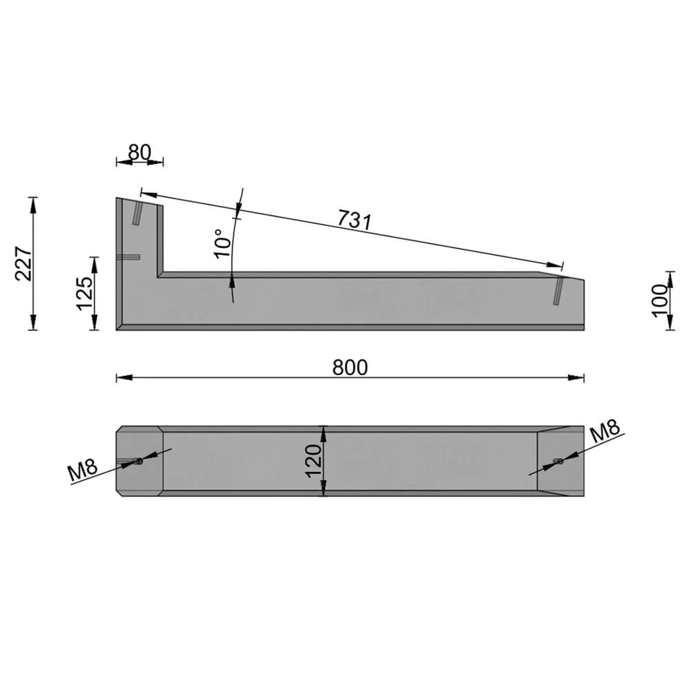 Les filetages M8 intégrés servent à la fixation sécurisée des modules PV. Le socle en béton contient déjà 2 filetages pour la fixation des modules et 1 filetage pour le montage optionnel de chemins de câbles ou de déflecteurs de vent à l'arrière.