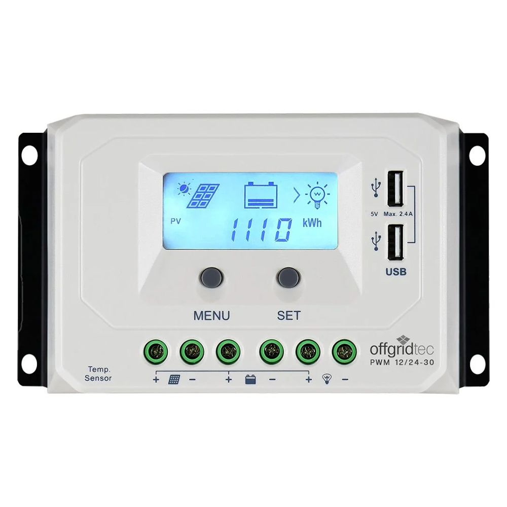 - 1 x regolatore di carica PWM da 30A con display LCD e porte USB