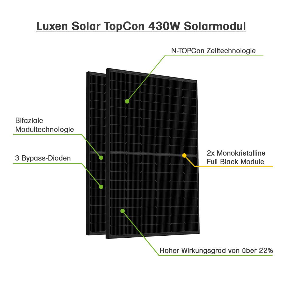 - 2x moduli solari bifacciali Luxen Solar 450W TopCon N5 Full Black