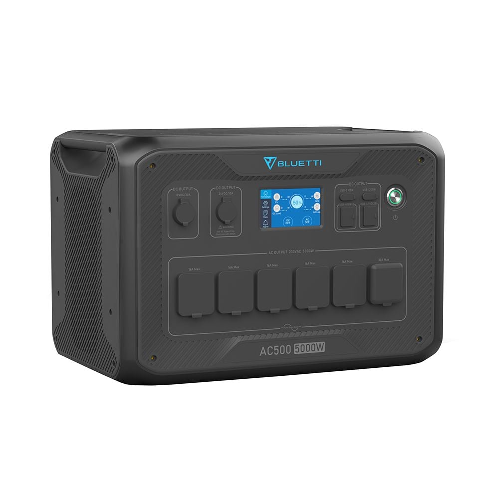 Con l'AC500, Bluetti presenta una centrale elettrica portatile che funziona in combinazione con almeno un modulo batteria B300S o B300. Questo dispositivo versatile è ideale per l'uso domestico, come backup in caso di interruzioni di corrente o per avventure in campeggio e all'aperto.