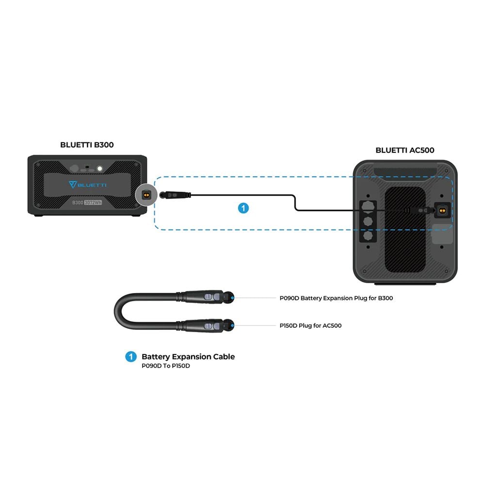 Con questo cavo di collegamento batteria Bluetti puoi collegare la batteria di espansione B300 o B300K alla tua Power Station Bluetti AC500. Il cavo permette di prolungare notevolmente l'alimentazione della tua Power Station, il che è di grande utilità soprattutto durante attività all'aperto prolungate o in scenari di alimentazione di emergenza.