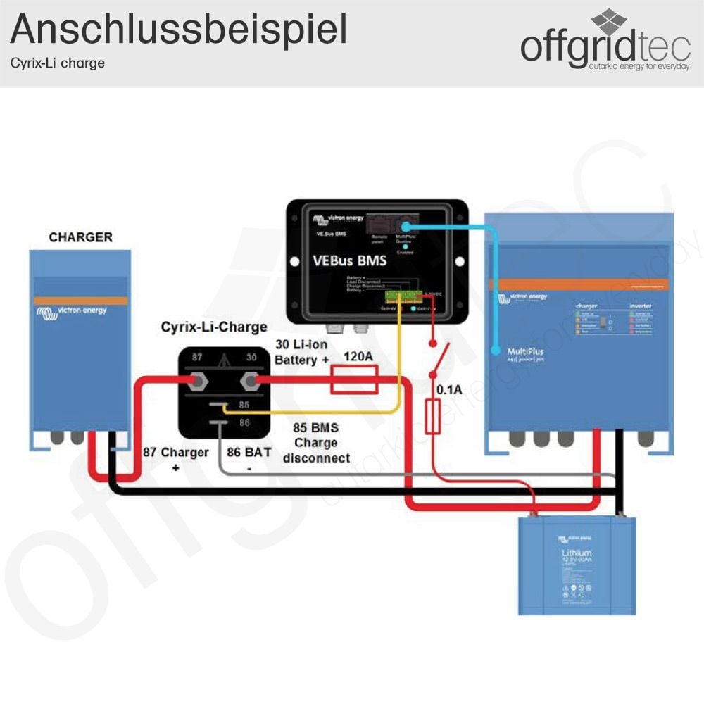 De Cyrix-Li-Load 12/24V-120A is een microprocessorgestuurd relais dat accu's automatisch parallel schakelt zodra één ervan een bepaalde spanningswaarde bereikt. Dit geeft aan dat de accu wordt opgeladen. Als de spanning onder de onderhoudswaarde daalt, ontkoppelt de Cyrix de accu's weer. Deze technologie maakt het mogelijk om scheidingsdiodes te vervangen en zorgt ervoor dat er praktisch geen spanningsverlies optreedt.