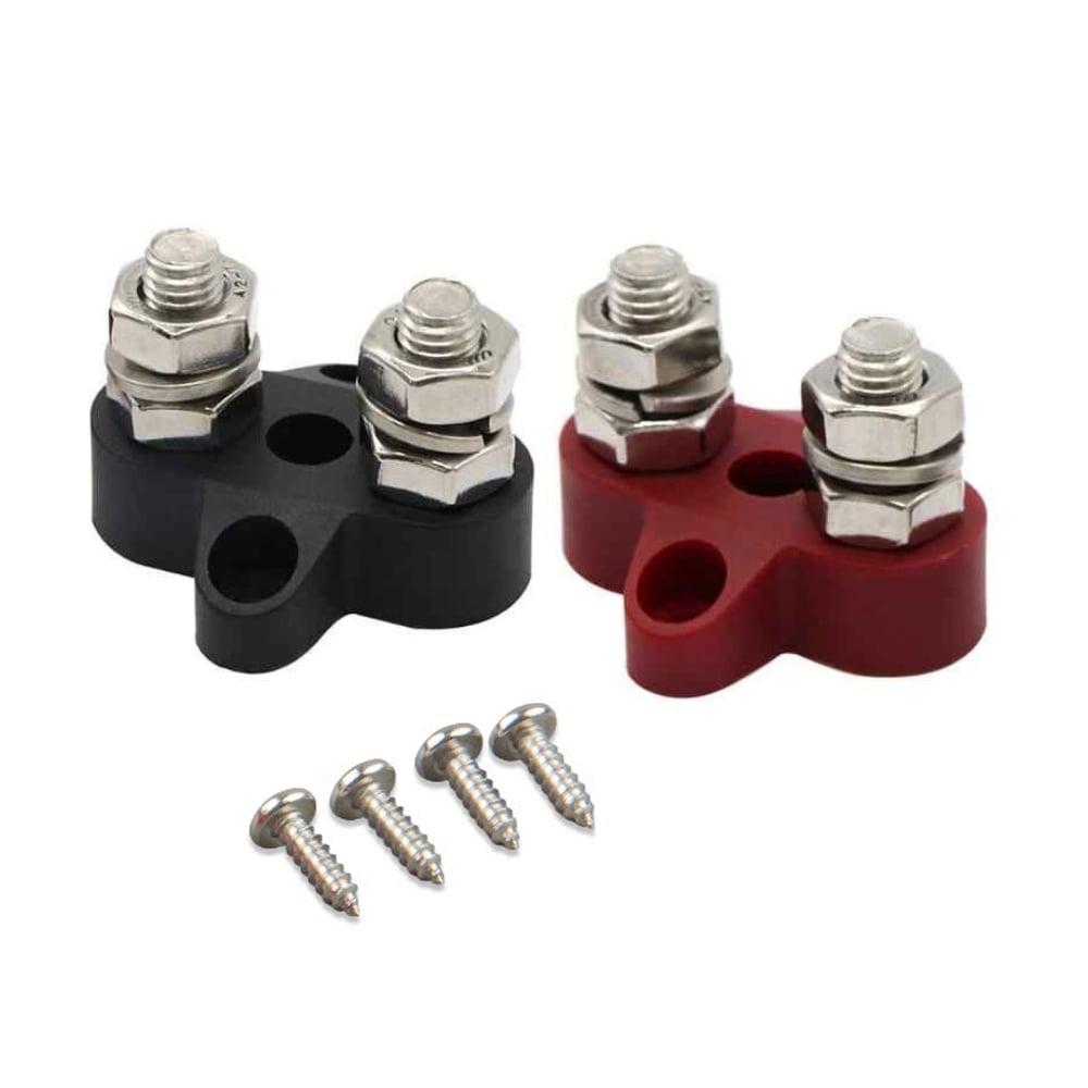 Das Set besteht aus zwei Bolzen in den Farben Rot und Schwarz sowie vier Befestigungsschrauben, die dir vielseitige Anwendungsmöglichkeiten bieten. Diese robusten Bolzen sind für beeindruckende 150 A ausgelegt und können Spannungen von bis zu 70V DC mühelos bewältigen.