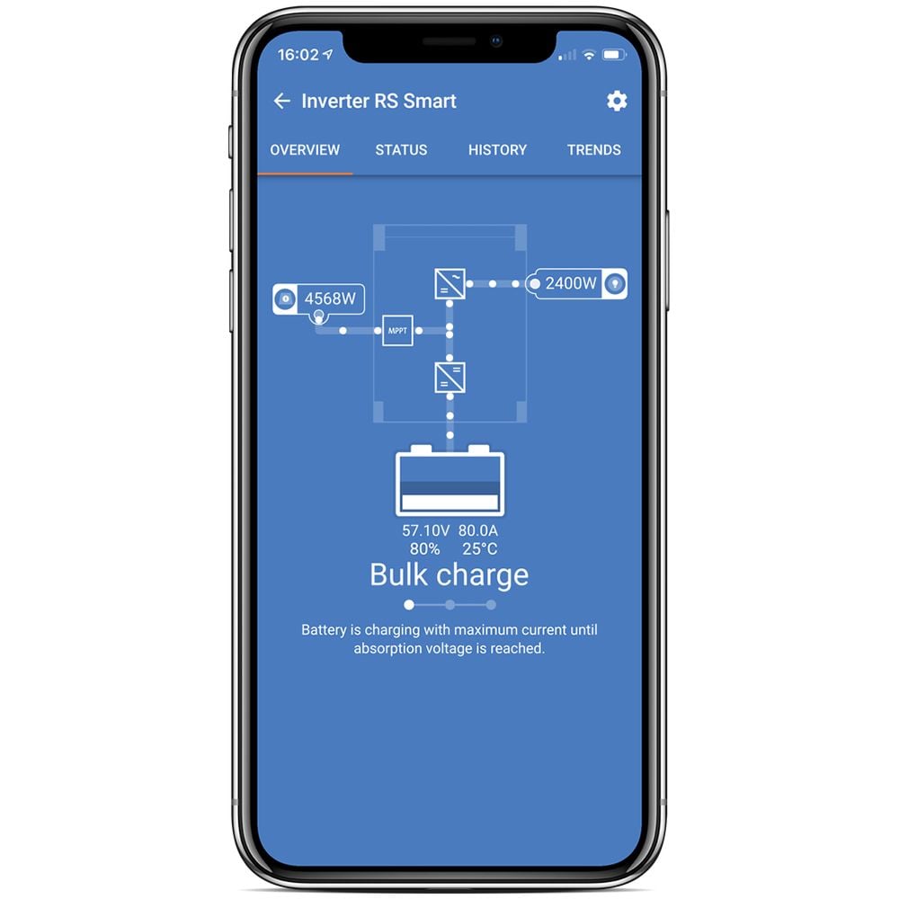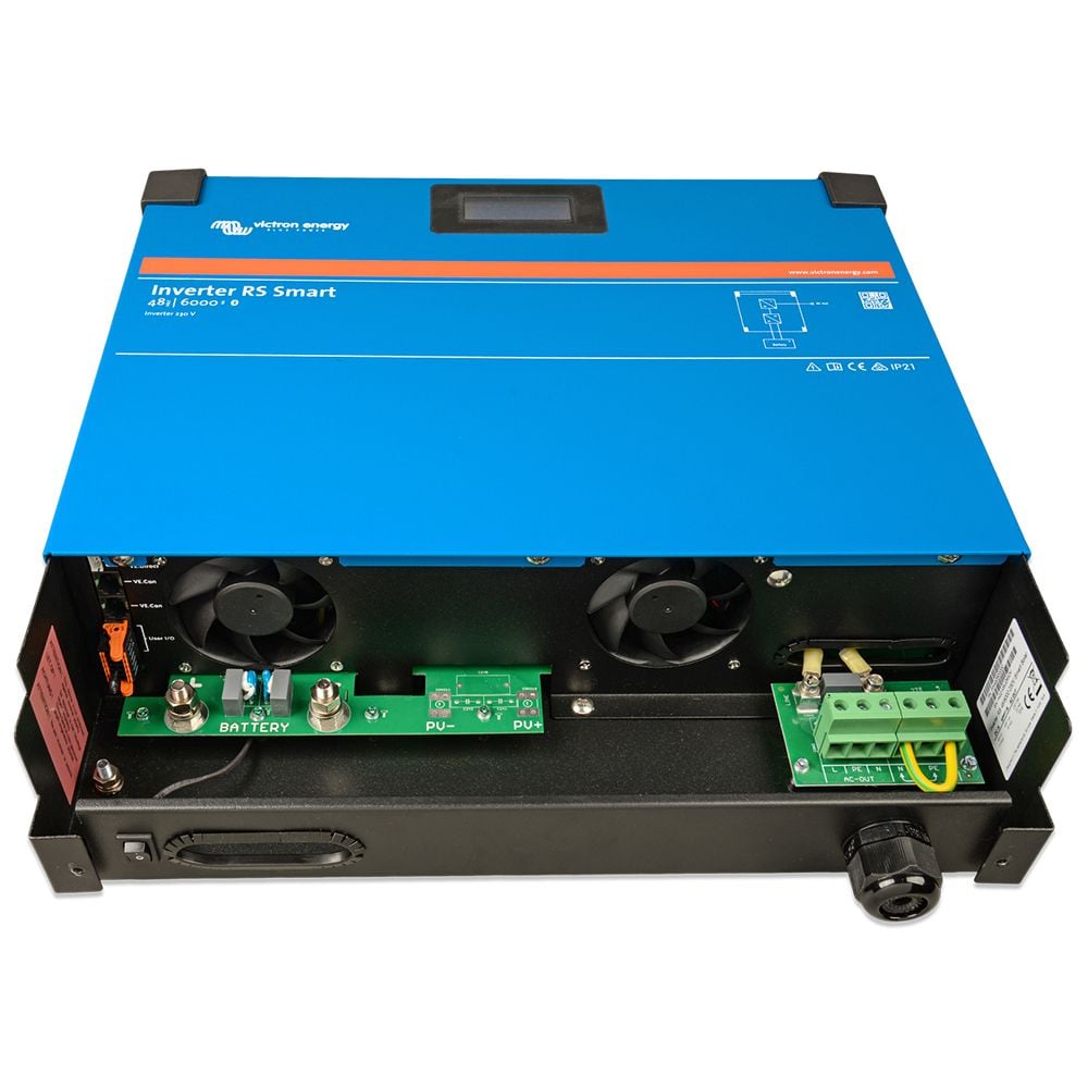 Menič RS 48/6000 Smart od Victron Energy kombinuje výkonný 48V DC, 6kVA 230V AC menič s vysokonapäťovou nabíjačkou. Ponúka pôsobivý MPPT výkon 4kW a má široký rozsah vstupného jednosmerného napätia 80-450V. Napriek všetkým týmto technológiám váži menič len 11 kg, čo ho robí obzvlášť praktickým.